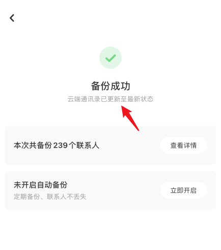 等待备份成功,即可将苹果手机内的通讯录进行云备份,