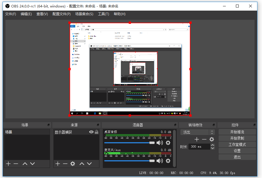 回到 OBS Studio 主界面,点击“开始录制”,即可进行电脑录屏,录制结束,点击“停止录制”即可。