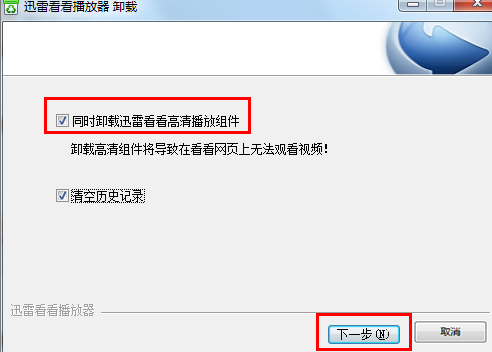 3. 当重新下载的视频文件仍然无法使用迅雷看看正常播放时,就需要完成卸载“迅雷看看播放器”,在卸载时,确保一同卸载“迅雷看看高清播放组件”。