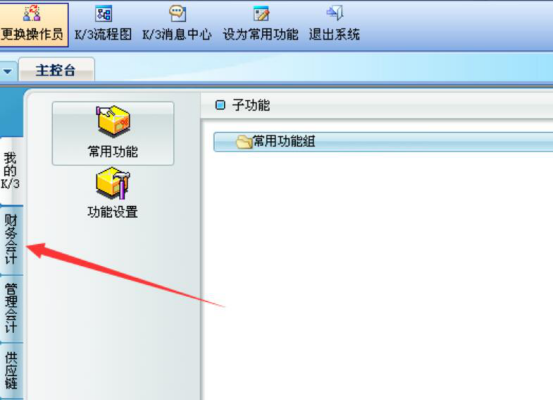 1. 首先,我们进入金蝶 k 3 系统,点击界面左侧的“财务会计”。