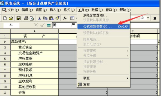 8. 想要金蝶 k3 系统生成资产负债报表。我们还需要点击“工具”菜单中的“公式取数参数”。
