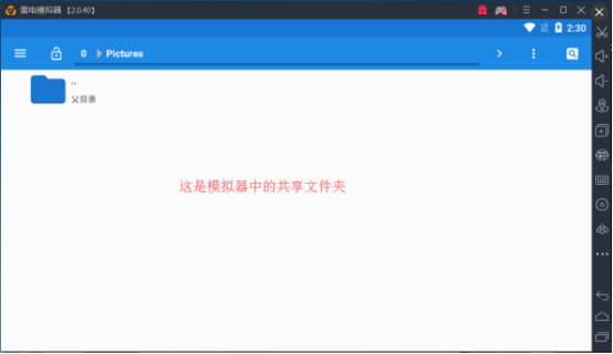 5. 将电脑中的文件共享到模拟器中的方法也是如此,只不过步骤反了过来,先将文件添加到电脑文件夹中,然后在模拟器的共享文件夹就可以看到该文件了;