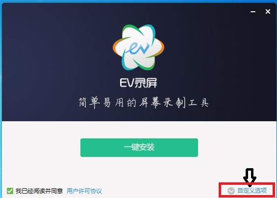 2. 打开下载好的安装软件,点击“自定义选项”。