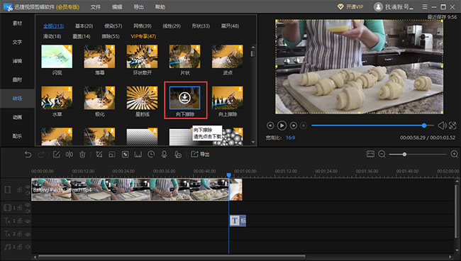 当然了,你还可以给视频添加特效、滤镜,首先下载对应模板,再将具体的模板特效加入轨道;如果你觉得画面质感有些缺陷,可以添加滤镜或叠附特效,在多个场景之间加入转场特效,切换时会更加自然。