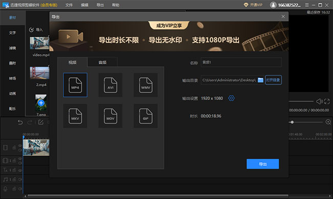 完成上述操作,即可成功制作高质量的微视频,点击“导出”按钮,设置相关参数,将视频导出到电脑本地。