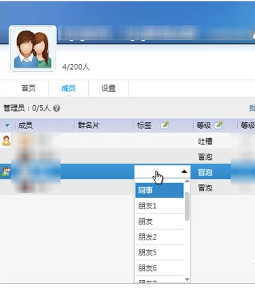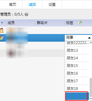 第三步:进入群设置->成员->将鼠标放在某个群成员的标签处,会出现空白框->选择您要设置的标签即可。
