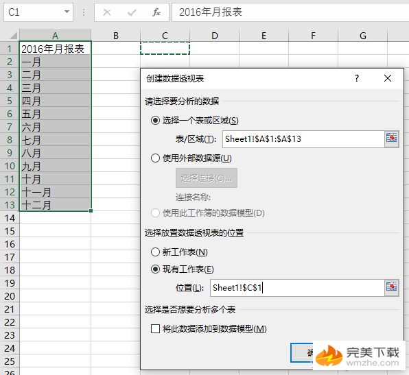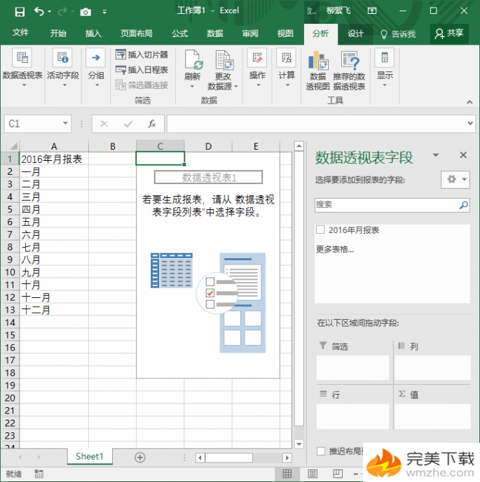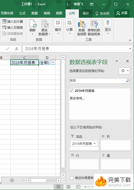 在透视表窗格中,将“2016 年月报表”(这个名称根据你之前所设置的列表标题而定)拖放到下面的“筛选”框中。