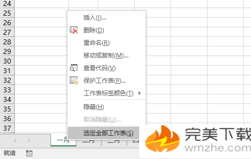 接下来的问题是,所有创建的工作表中,都会有一个透视表,而现在我们已经不需要它了。在任意一个工作表标签上右击,从右键菜单中选择“选定全部工作表”。