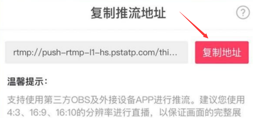2. 然后,登录抖音直播伴侣 APP,将抖音直播伴侣竖屏开播的推流地址复制。