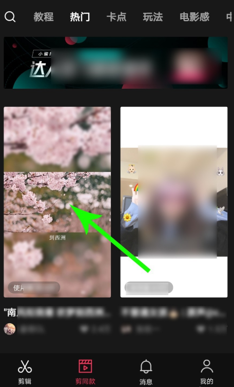 在手机中打开剪映 APP,进入界面,如图,点击下方的“剪同款”功能,