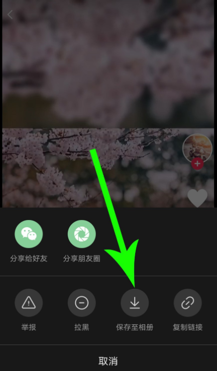 展开列表,点击“保存至相册”,即可自动保存视频,系统会有提示,