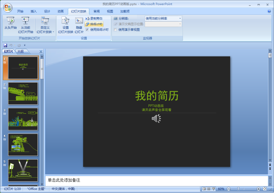 1. 任意打开一个 PPT 文件。(这里打开以我的简历 PPT 动画版为例说明)