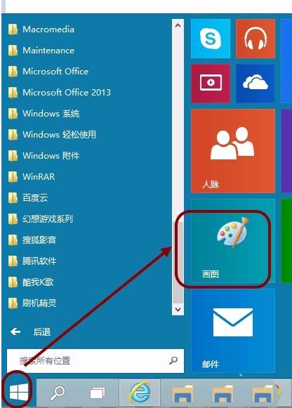 2. 这样屏幕截屏就被复制到 Windows 剪贴板中,这时打开 Windows 画图程序,可以从开始菜单中直接点击画图的图标打开。