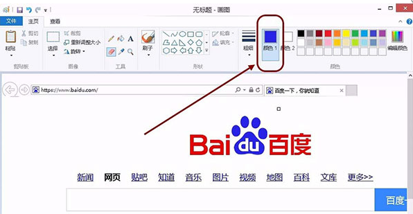 7. 点击图片中希望获取颜色值的区域,然后即可看到画图软件的“颜色 1”,立即变成我们鼠标指到的区域的颜色。