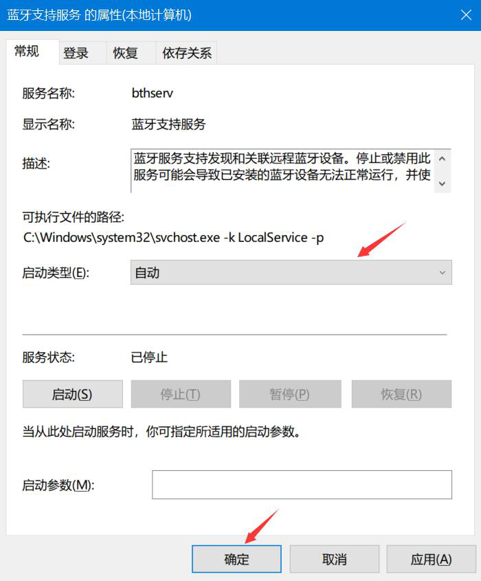4. 接下来,在蓝牙支付服务的属性界面中,将启动类型设置为“自动”,并点击“确定”按钮。一般来说,采用此方法能解决电脑蓝牙连接不上的问题。
