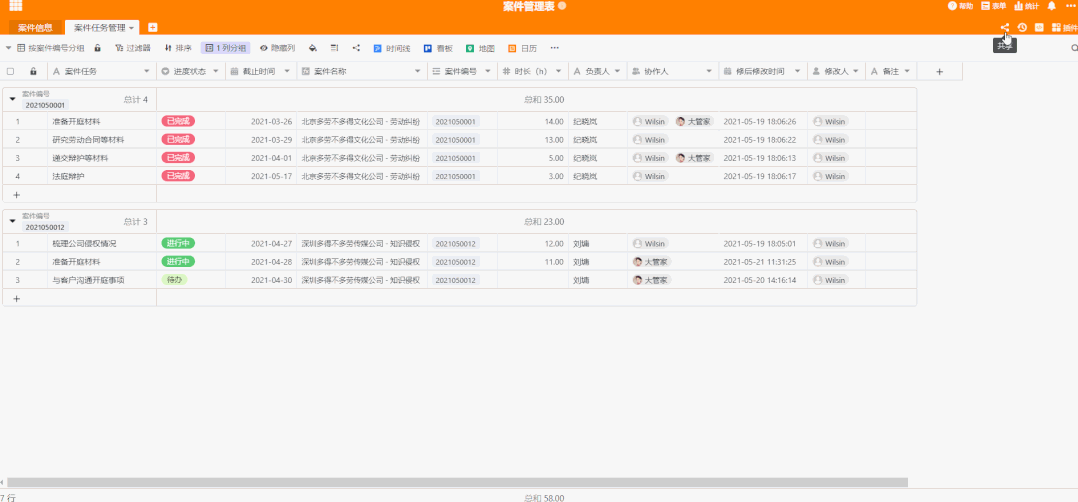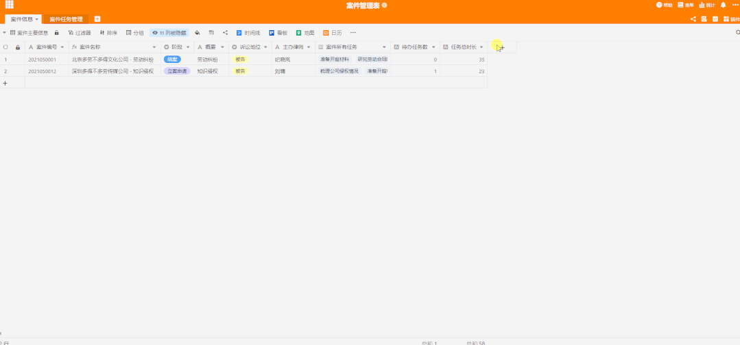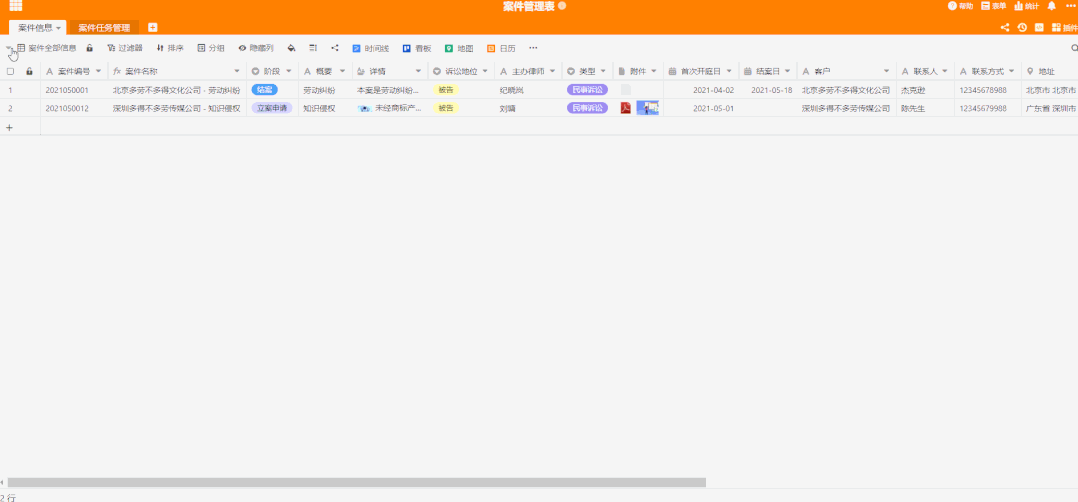 我们用表格管理信息时,经常需要记录同一业务的不同类信息的关联关系,比如:在“客户销售管理表”中,需要关联客户基本信息和每个客户的多个跟进记录;在“律师案件管理表”中,需要关联案件基本信息和每个案件的多个任务等等,像这种关联关系在 Excel 中无法很好地去处理和表达,经常需要重复地去记录,而在 SeaTable 中就很轻松省事儿。