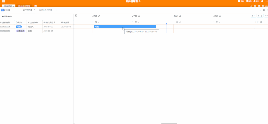 它以进程为载体,将表里的任务事项标注在时间轴线上,以时间形式呈现出来,帮助我们更直观地可视化。