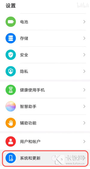 13.退出当前应用,找到华为手机的【设置】,点击【系统和更新】;