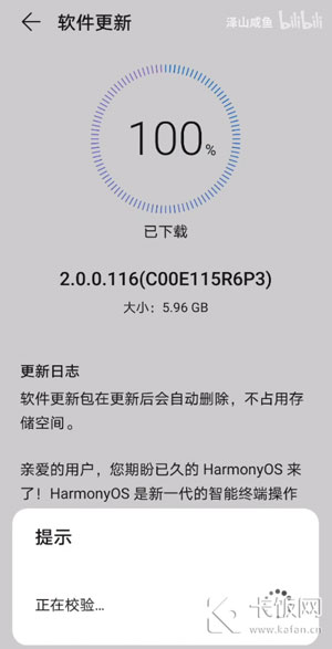 16.最后无需操作屏幕,等待系统自动下载并校验后,手机将自动重启,开机后即可体验鸿蒙2.0系统。