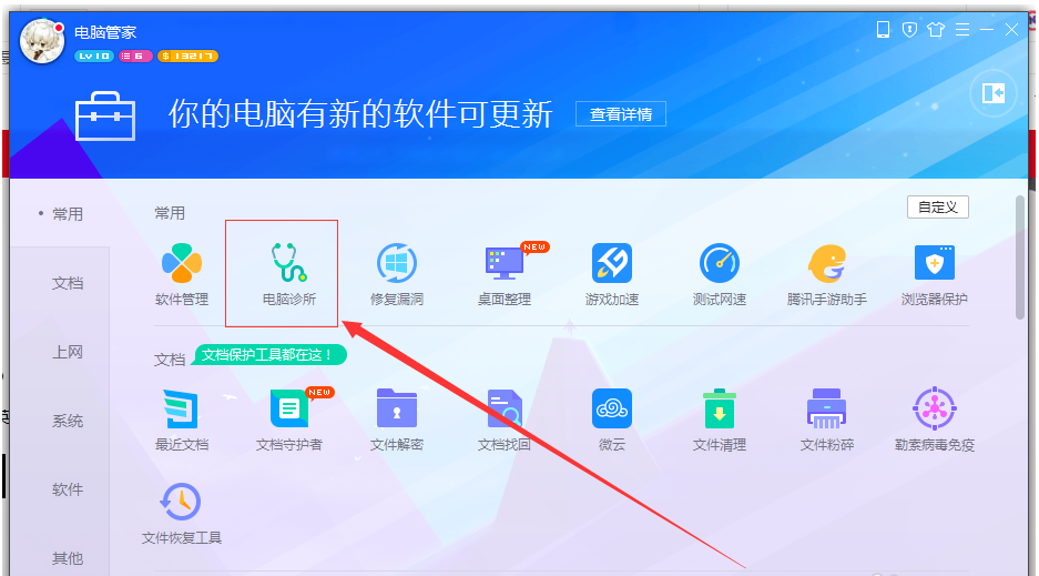 方法 2.打开腾讯电脑管家,进入界面,在右下角点击\"工具箱\",然后找到并点击\"电脑诊所\"功能