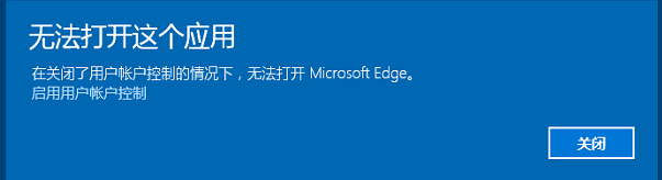 6. 重启计算机,打开 EDGE 浏览器,在报错窗口中点击"启用用户账户控制"。
