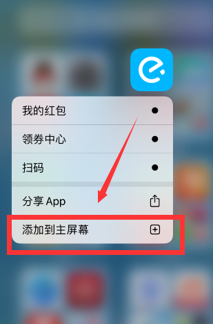 弹出菜单选项,点击"添加到主屏幕",即可将 APP 应用添加到手机桌面。