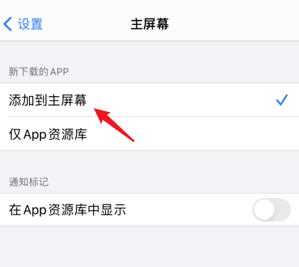 如果你希望后续下载的 APP 可以显示在手机桌面,需要进行设置,点击进入设置界面,选择"主屏幕",