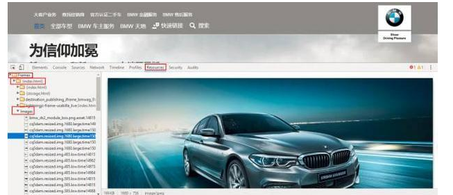 很简单,依次点击"Resources"—"Frames"—"index.html"—"images",在 images 目录下,放着这页网页中的所有图片文件。