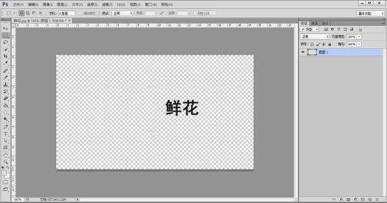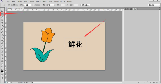2. 然后,点击 PS 工具栏中的"矩形选框工具"将文字部分选中,如下图所示。