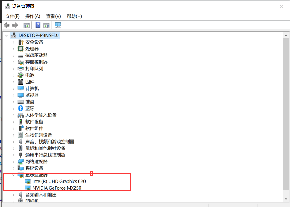 点按快捷键"Windows+X",选择"设备管理器",打开设备管理器,点击展开"显示适配器",查看显卡独显和集成显卡 uhd 为集成显卡,NVIDIA 为独显,