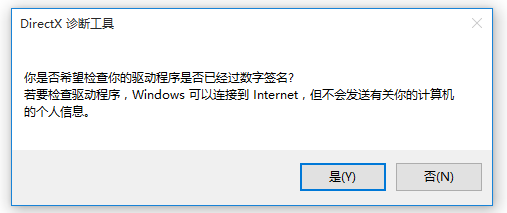 点按快捷键"Windows+R",弹出运行对话框,输入命令 "dxdiag",回车,出现提示,点击"是",