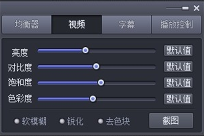 5. 视频按钮下面,包含有影片的亮度,对比度,饱和度,色彩度,还有锐化,模糊,截图等控制。