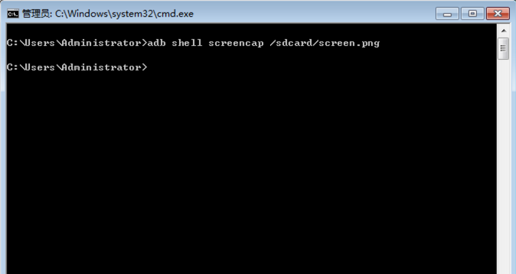 命令:"adb shell screencap /sdcard/screen.png"