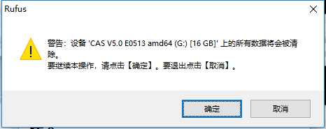 3、其它默认,然后点击界面下方"开始",这时会弹出 U 盘格式化警告,如果确认 U 盘数据已备份或转移,那么点击"确定"。