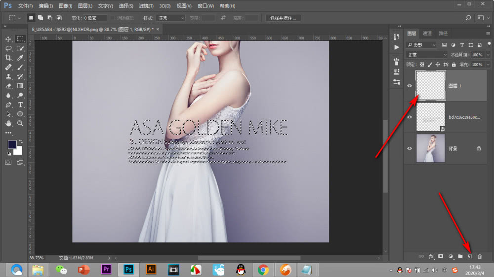 3. 点击下方的新建图层按钮,在文字的上方新建一个透明图层,
