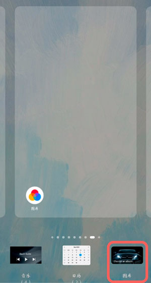3、左右滑动,找到所有窗口小工具中的【图库】小工具;