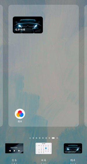 5、由于默认的大小是2X1,点击空白处退出桌面设置,长按添加好的【图库小工具】,拖动边框可放大;