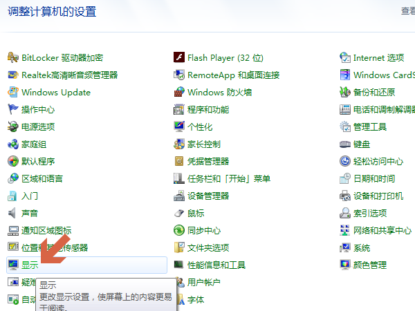 2. 进入"显示"设置界面。点击控制面板中的"显示"按钮,进入"显示"设置界面。