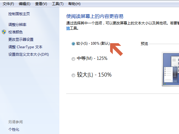 3. 将显示比例设为 100%。勾选显示比例为 100% 前面的单选按钮。