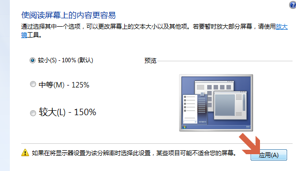 4. 应用所设置的选项。点击"应用(A)"将所更改的显示设置应用到系统中。