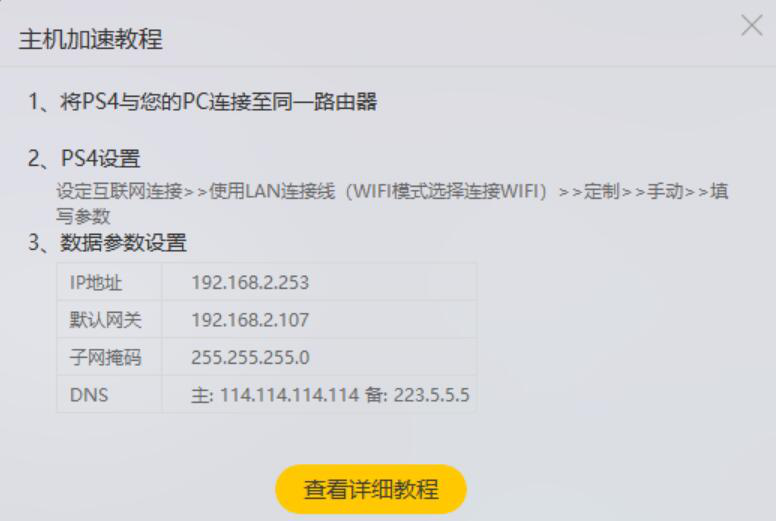 3. 此时,雷神加速器便会弹出如下图的 PS4 加速教程提示。