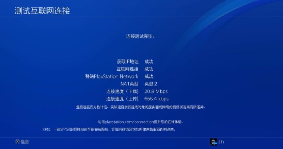 8. 最后,玩家还需要测试互联网连接,当测试结果提示成功的时候,就可以正常使用雷神加速器来加速 PS4 游戏了。
