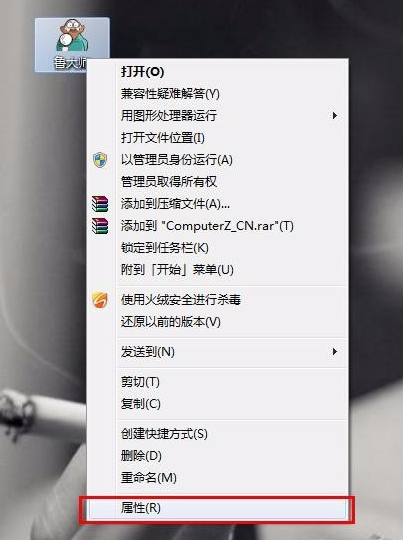 使用鼠标右击鲁大师图标,弹出菜单,点击"属性",