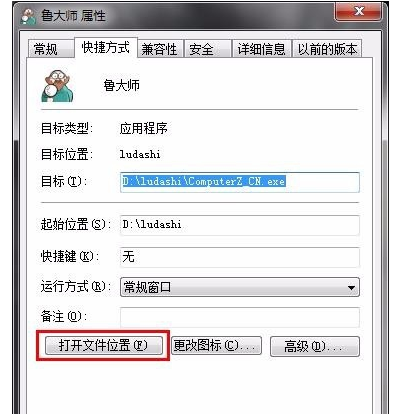 打开属性菜单,如图,点击"打开文件位置",