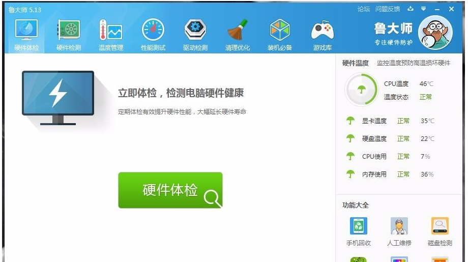 重启鲁大师,现在可以正常使用软件了,问题解决!