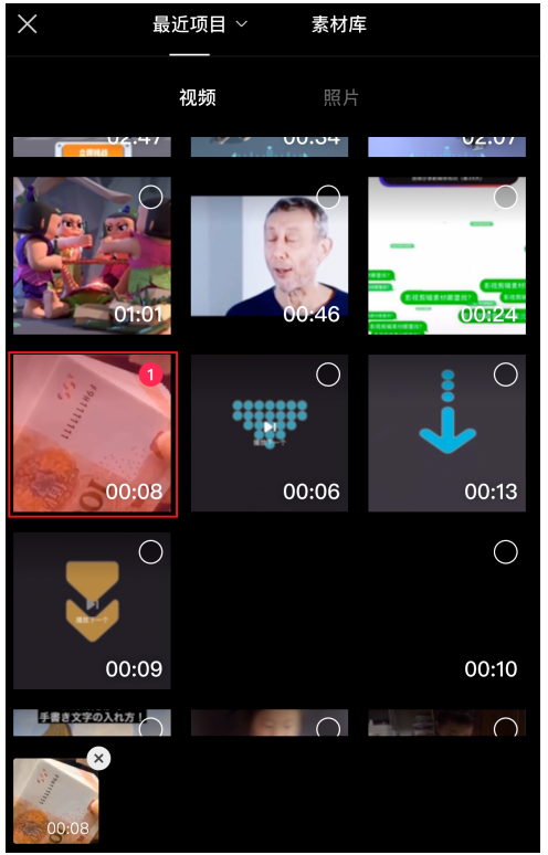 进入手机相册,打开视频列表,选择需要编辑的视频,点击"添加",