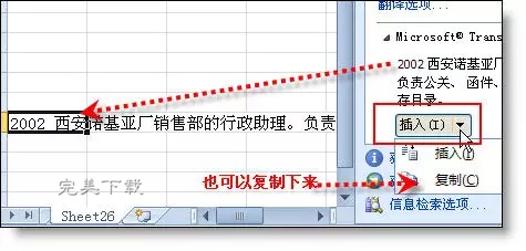 选取空单元格,点"插入"按钮,翻译的结果即填充到单元格中。