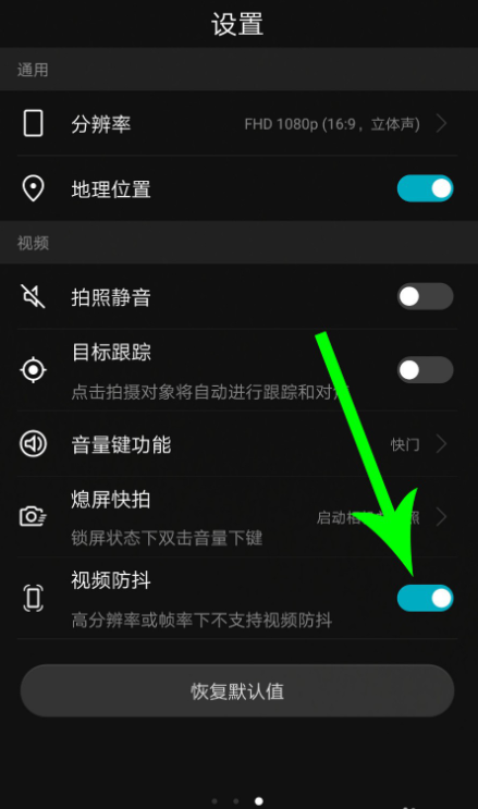进入设置列表,点击"视频防抖",打开这一功能,