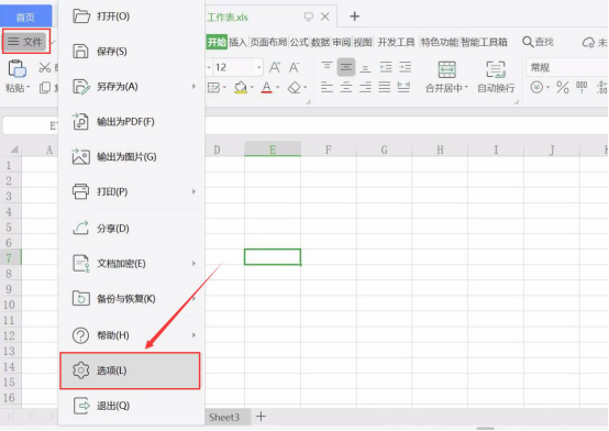 2. 然后,点击 excel 表格"文件"菜单中的"选项",从而继续下一步操作。