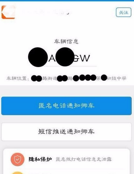 4. 把这个二维码贴到车玻璃上,别人需要你挪车的时候,用支付扫码这个二维码,就会看到这样界面,核对车辆信息和位置是否正确。